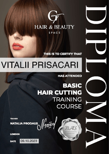 The highest professional standard for hairdressing in the UK, recognized by the Hairdressing Council and based on National Occupational Standards (NOS) set by HABIA. This diploma required mastery of advanced cutting techniques on wet, dry, curly and straight hair, precision colour correction, consultation protocols, and professional health & safety procedures across 120+ guided learning hours.